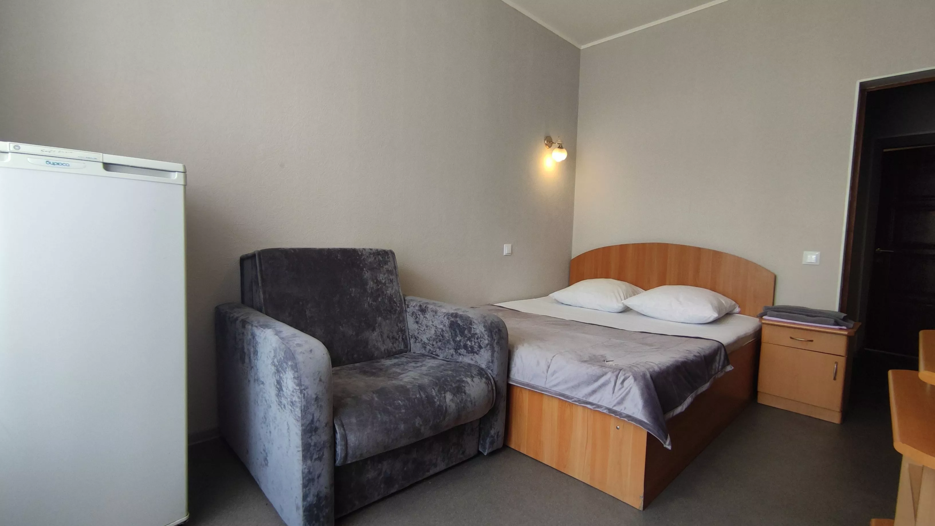 Номера оборудованы холодильником, телевизором, телефоном, мебелью (мебельная стенка, 1 двуспальная кровать, кресло-кровать, прикроватная тумбочка, журнальный столик, банкетка).